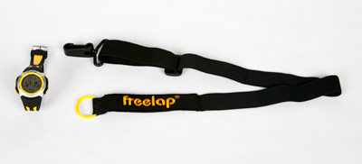 The Freelap stopwatch may be worn on the athlete’s wrist or, when assembled with the sprint belt, around the athlete’s waist. The advantage of wearing the stopwatch on the waist is that the position of the stopwatch with respect to the athlete is constant when crossing the path of a transmitter, thus increasing the accuracy. Distance athletes running laps of several hundred meters or more may opt to wear the stopwatch on the wrist since the timing difference is negligible. However, when running short sprints between 10 and 100 meters, the sprint belt is recommended for best accuracy.